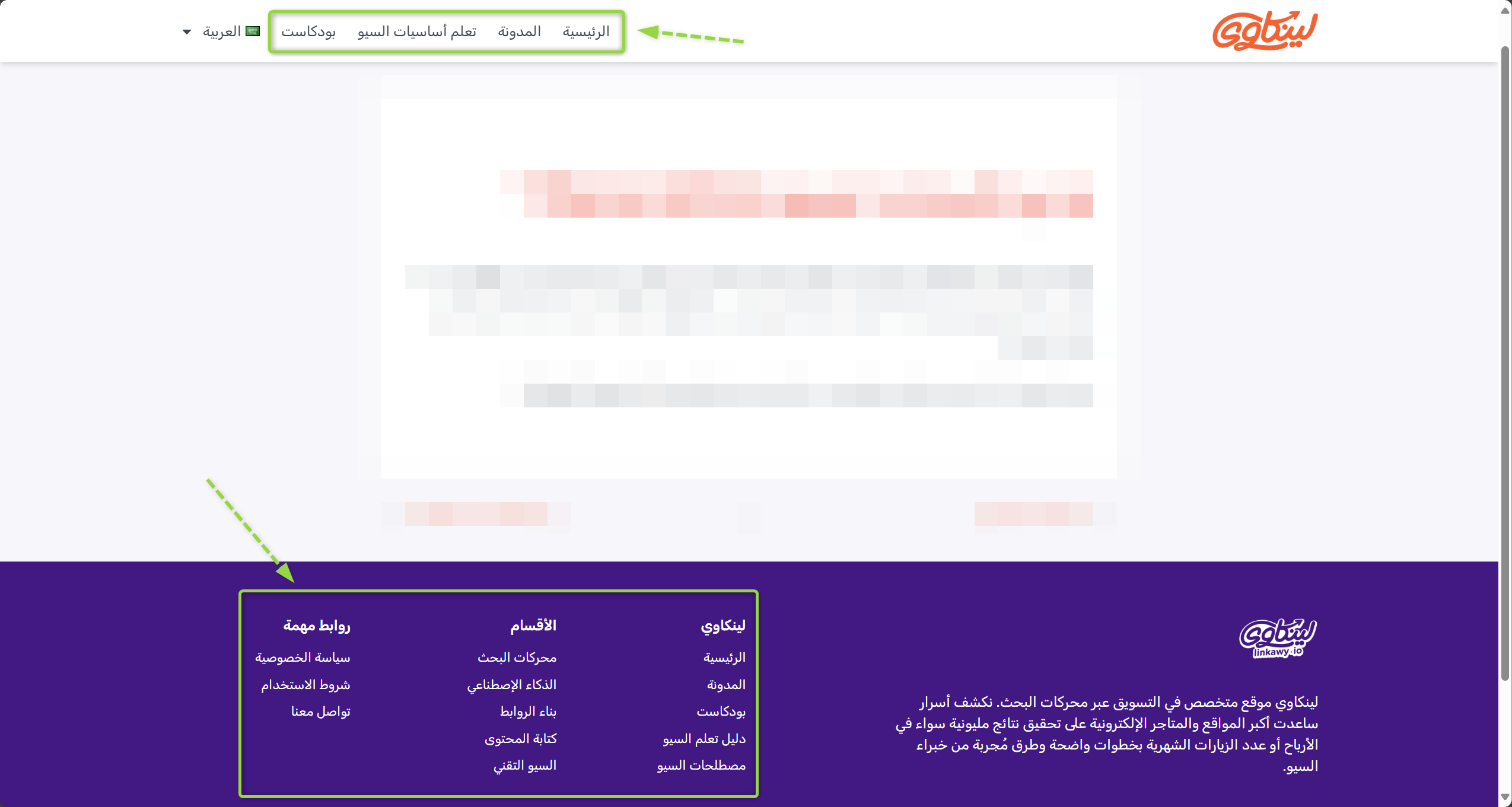 إليك مثال على الروابط الشاملة Sitewide Link من موقع لينكاوي: